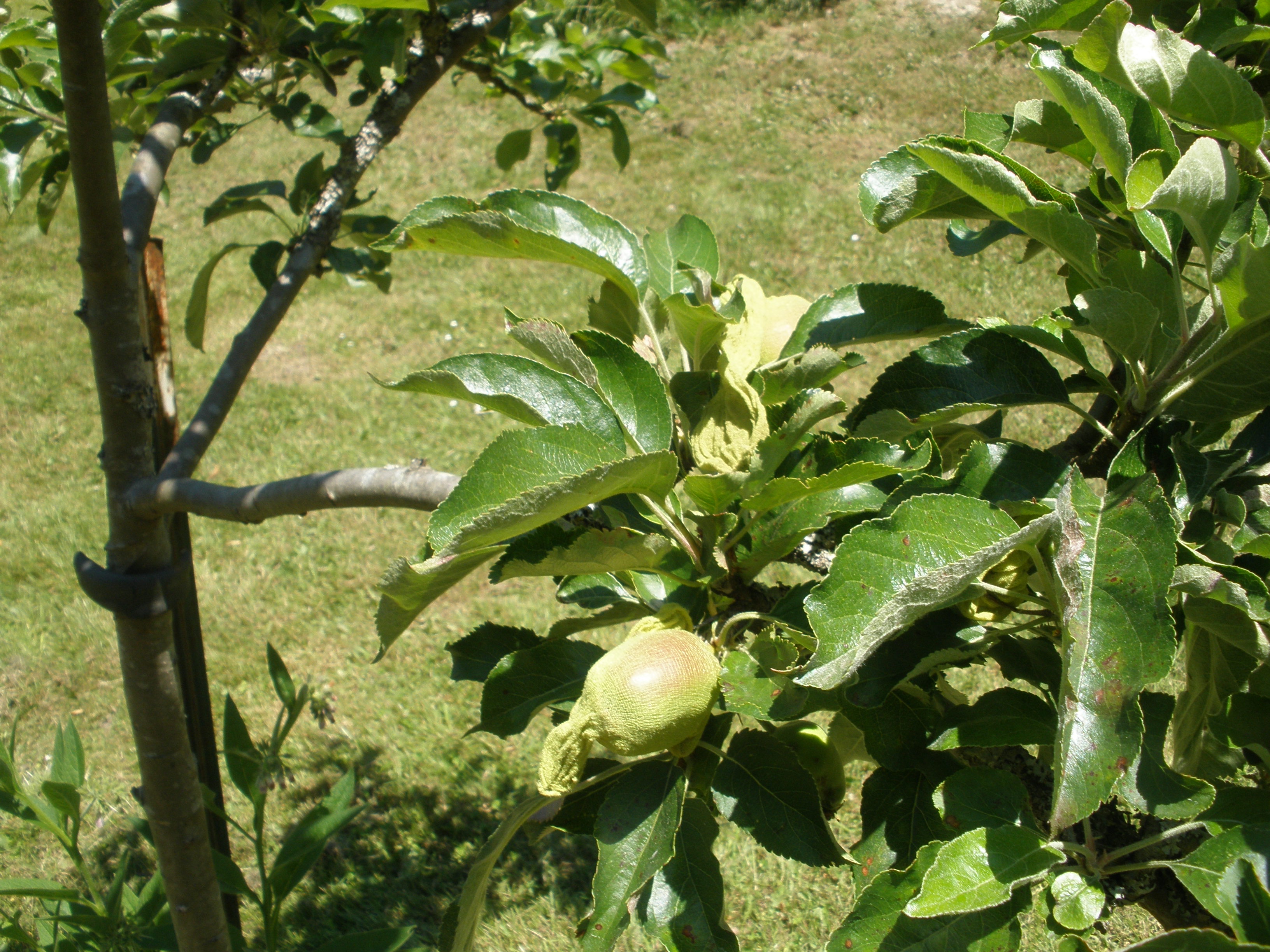 The apples are thriving in their footsox.