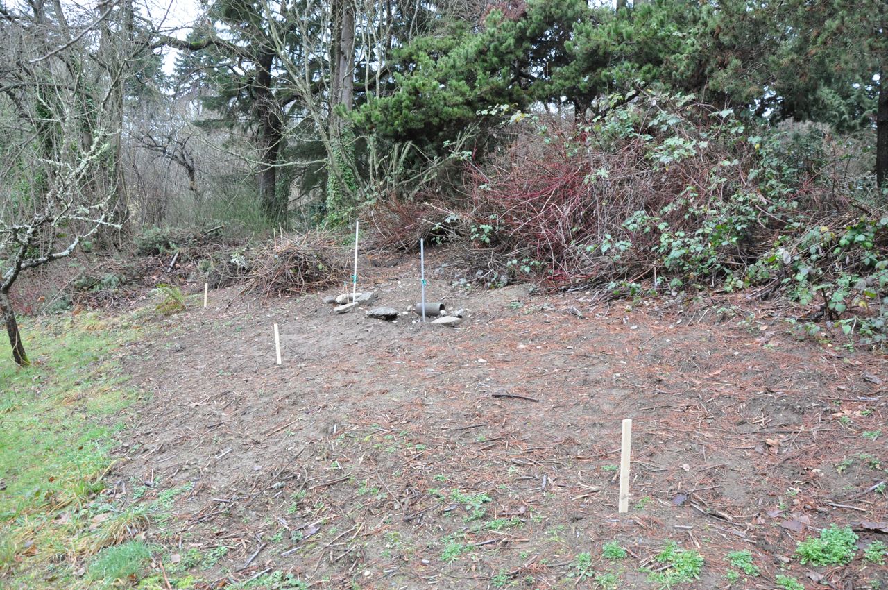 Andy leads the viticulture effort, and here are our first two catawba grapes, along with stakes for potential bat house sites