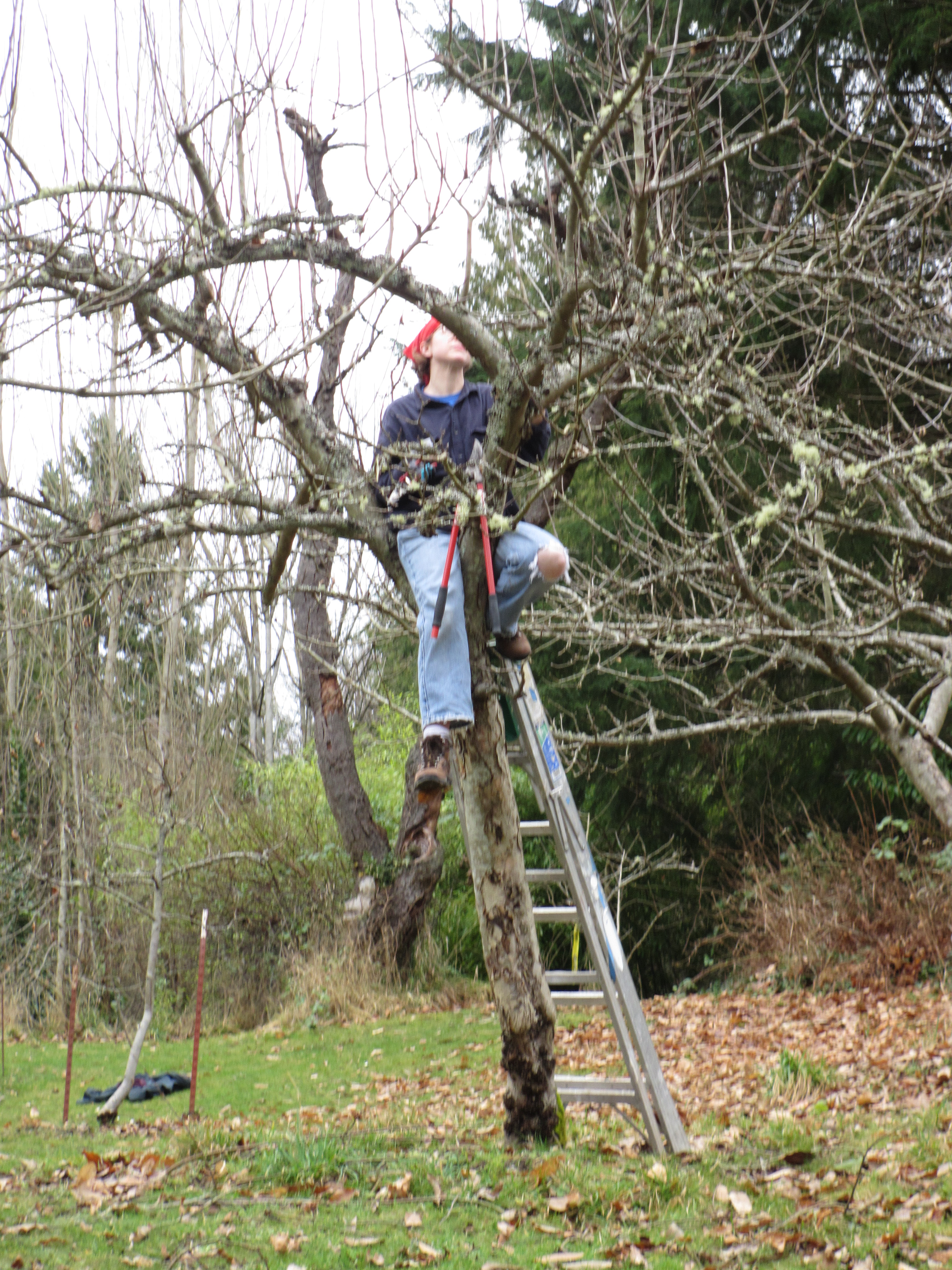 Olivia looks comfortable as she’s pruning out excess unproductive branches.